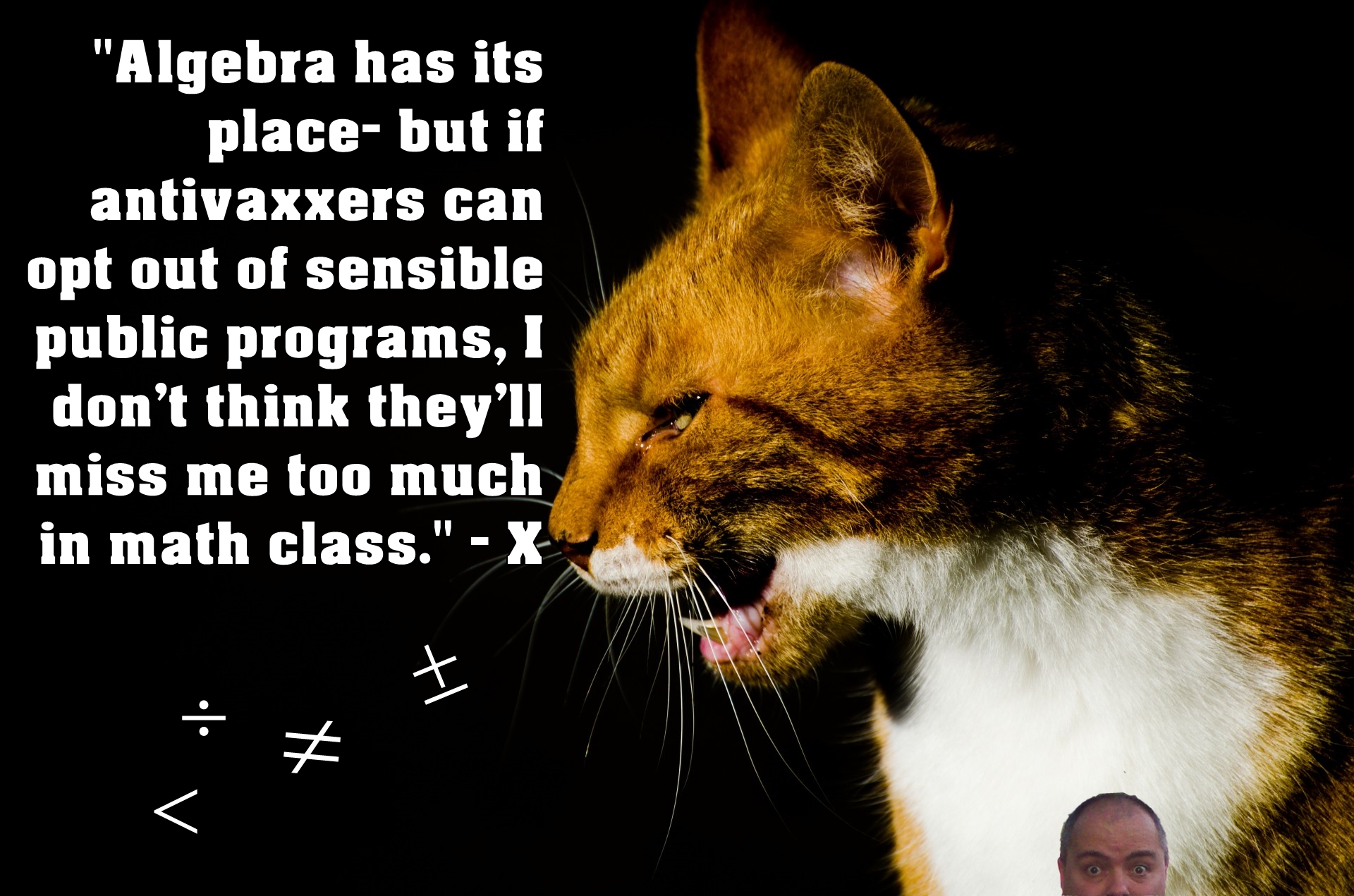 I made the above tongue-in-cheek argument, hoping to perhaps disparage both the learning of algebra and the anti-vaxxers. (I fit the futility of algebra and the crazy of anti-vax into one pithy meme. You owe me $1. Thanks)