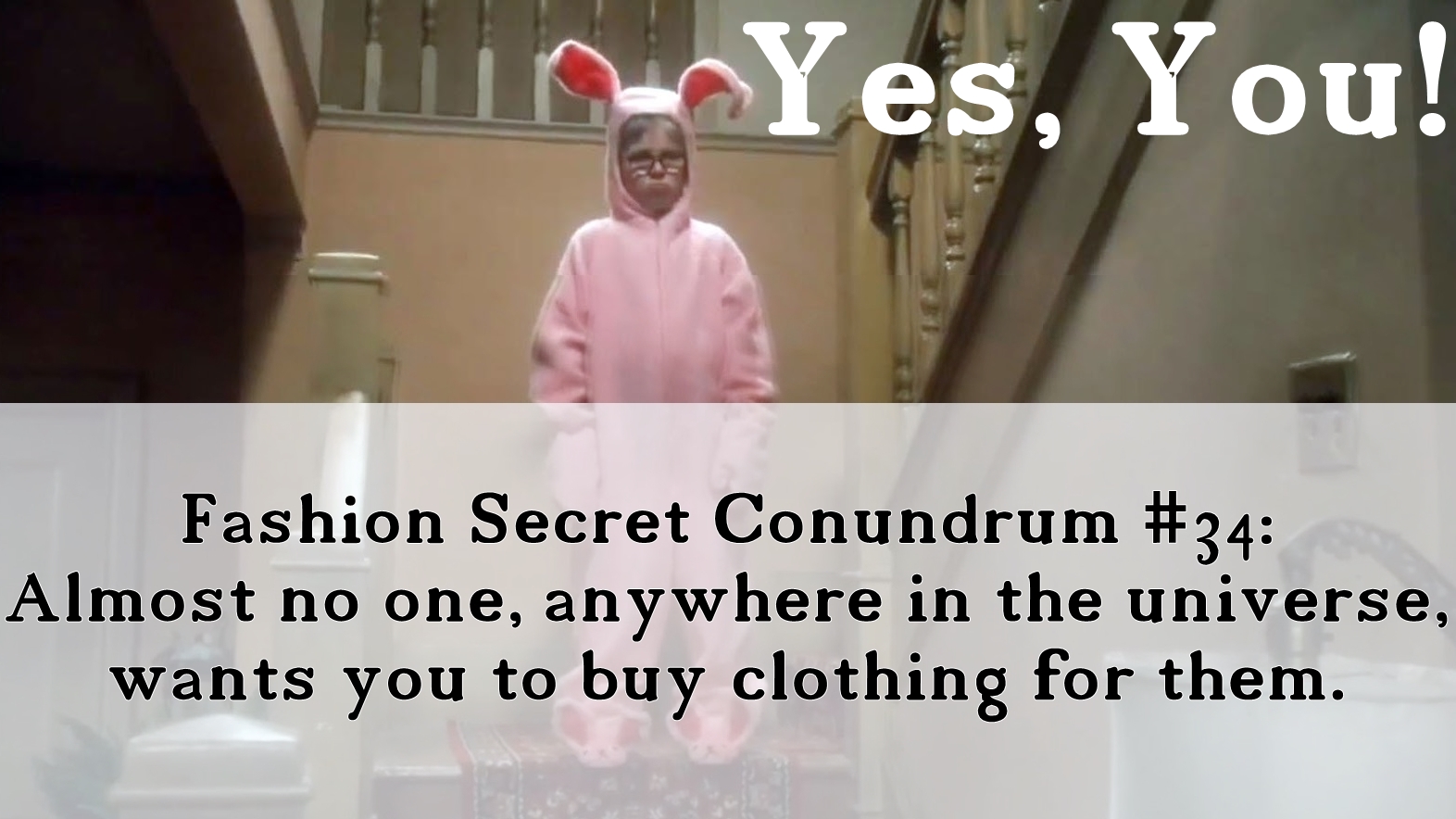 Fashion Secret Conundrum #34: Almost no one, anywhere in the universe, wants you to buy clothing for them.