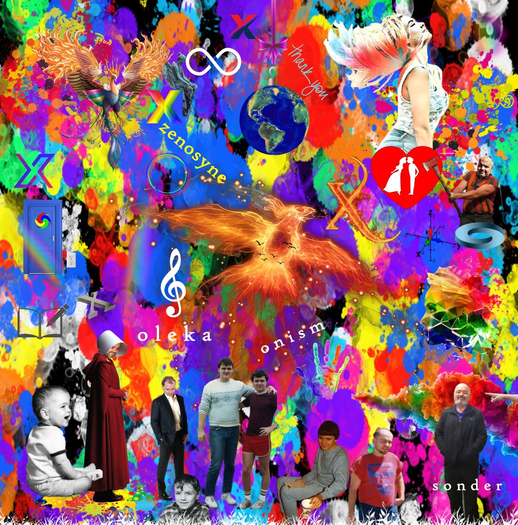 I look at my blue box fan, red rocking chair, spa blue Keurig, cotton candy car, my orange-red shirt, and the metal works I spray-painted…