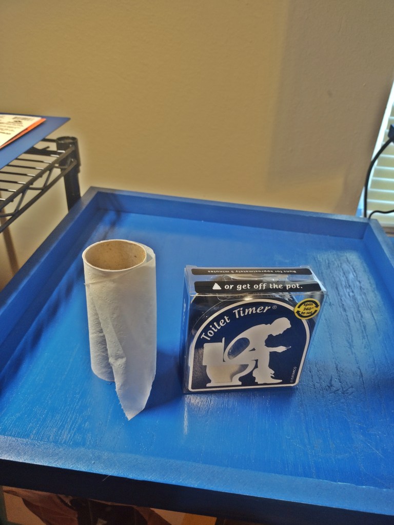 In a cosmic coincidence, an Amazon driver just dropped off a relevant surprise gift from someone about ten minutes ago: a toilet timer!