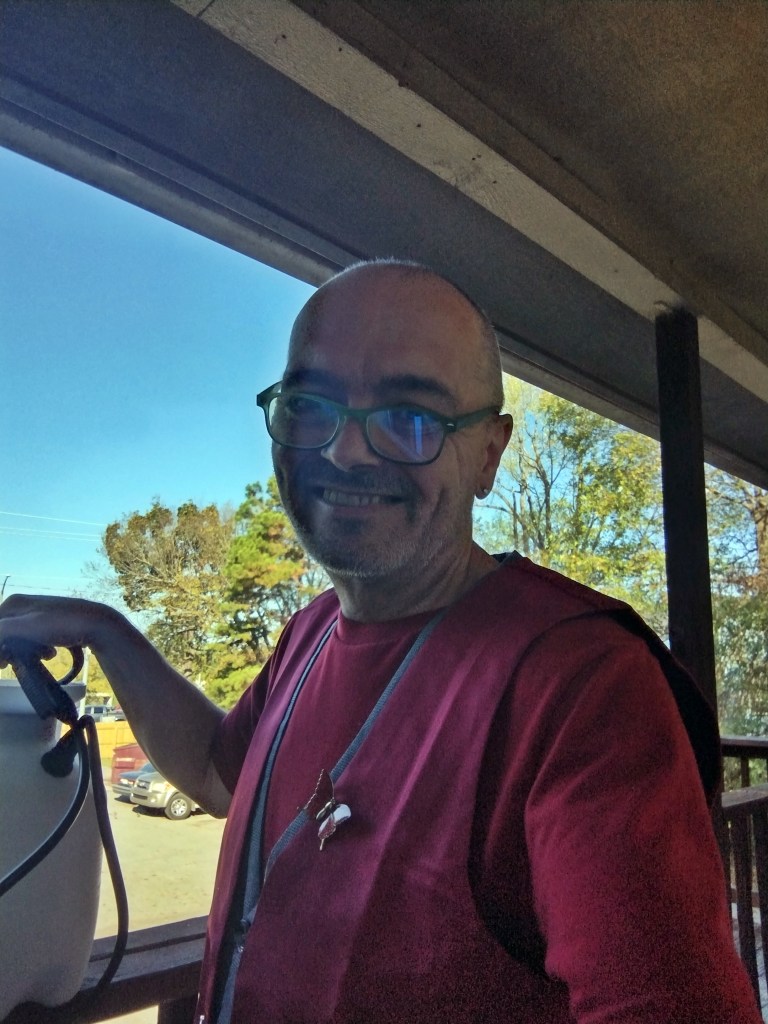Even though I live in an apartment, I use my pest control habits to spray the dumpsters, walkways, and anything else with a great environmentally safe insecticide. It’s safe for pets and humans, too. It’s not good in lemonade, but it’s the best. I got tickled when one of the neighbors asked me to come inside and spray their kitchen. It’s been a blue moon since I posted about it, but most people can save a lot of money by doing this sort of thing for themselves instead of paying an exterminator. Especially if they pay for a once-a-year treatment and then do the quarterly sprays themselves. I’m sure I looked a little out of my element this morning, wearing a vest and looking like I was about to go to church. (If I owned an extermination company, I’d definitely have the employees dress in costume, doubly so around Halloween. I don’t think it would ‘bug’ them.)