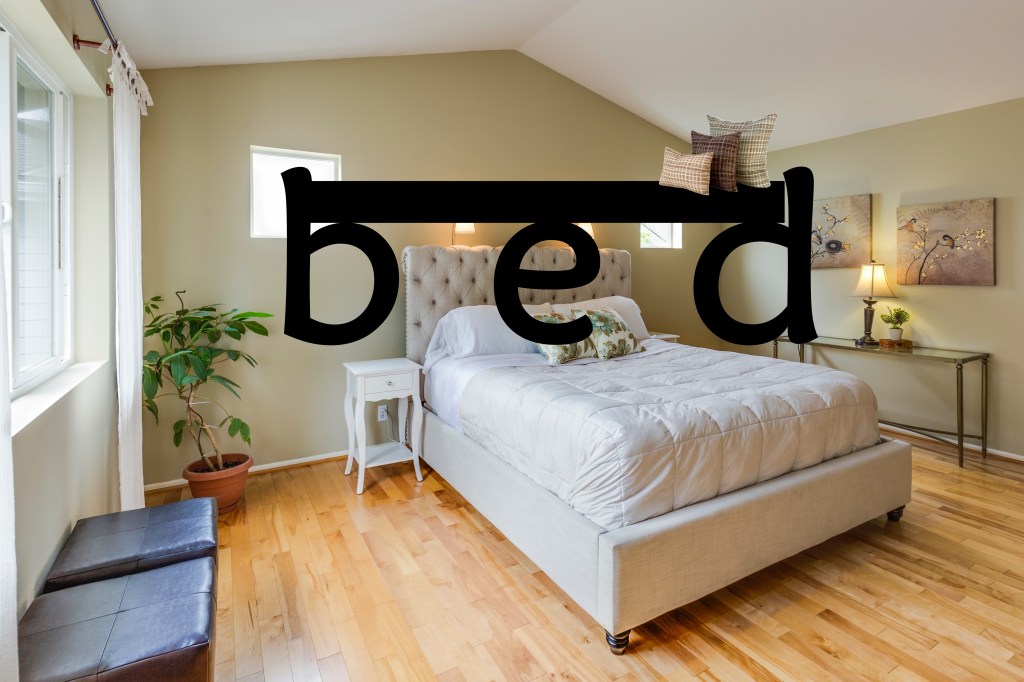 The word ‘ b e d ‘ looks like a bed. I think someone should make the box spring or platform section out of those three letters, both because it is creative and it would also label that piece of furniture.