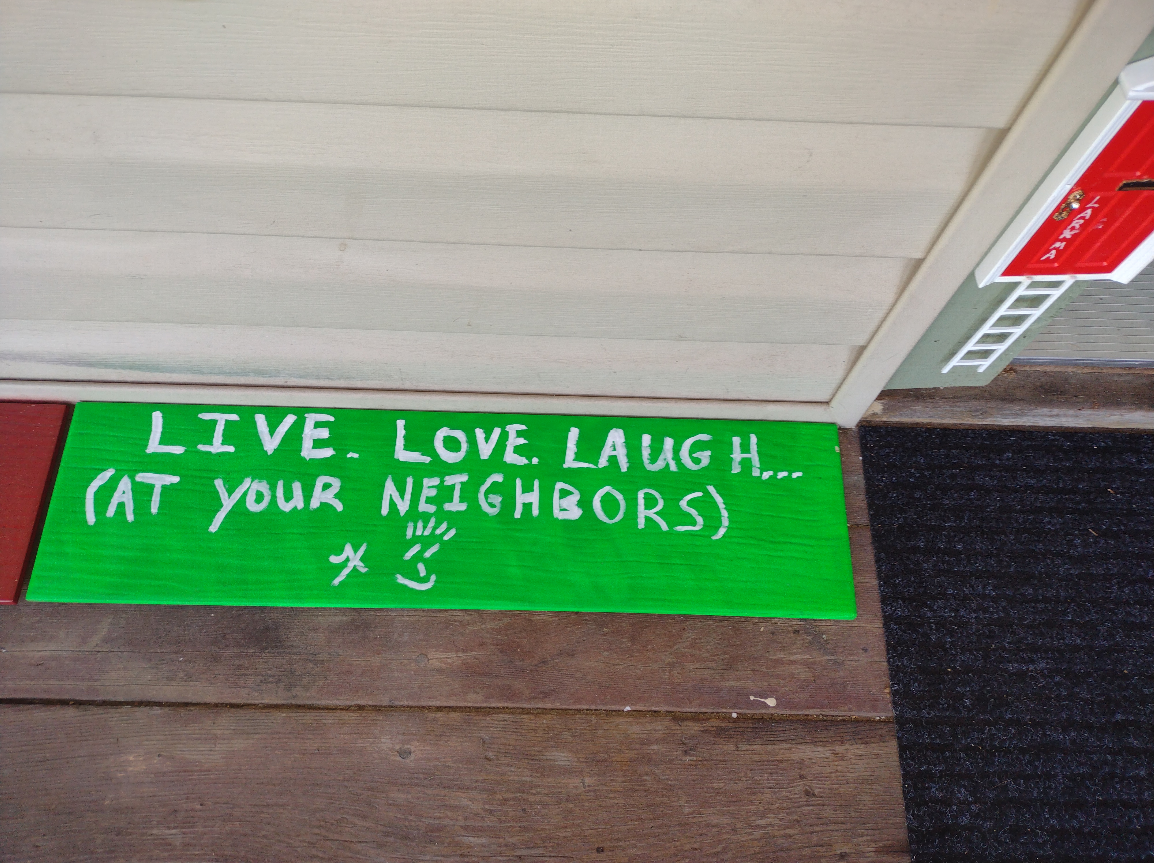 Someone wrote me and said, “I can’t believe you don’t have pithy sayings written on any of your painted tiles on the landing outside the apartment.”