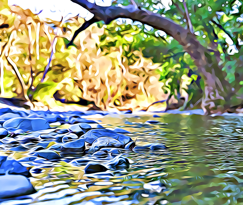 A few minutes later, I reached one of the breaks in the foliage, one exposing a series of stones strategically placed across the creek. Without thought, I stepped off to cross the rocks. “Be careful,” I told myself. As everyone knows, river stones can be beguiling in their slipperiness. All of us have hopefully experienced the momentary horror of knowing we’re going to fall in, no matter how madly we windmill our arms for balance. My surgery incision tends to call out to me when I’m pondering crossing a fallen log, jumping a park bench, or climbing a tree. Oh, how I miss climbing trees! I’ve climbed fifty in the last year, even when the wind was dormant and the sun baked the upper reaches of the available trees. Few things can provide such a unique perspective. Sitting on a live thing, smelling the pungency of the leaves, and most of all, watching things and people move about with no concern for the possibility of someone sitting above them in the branches.