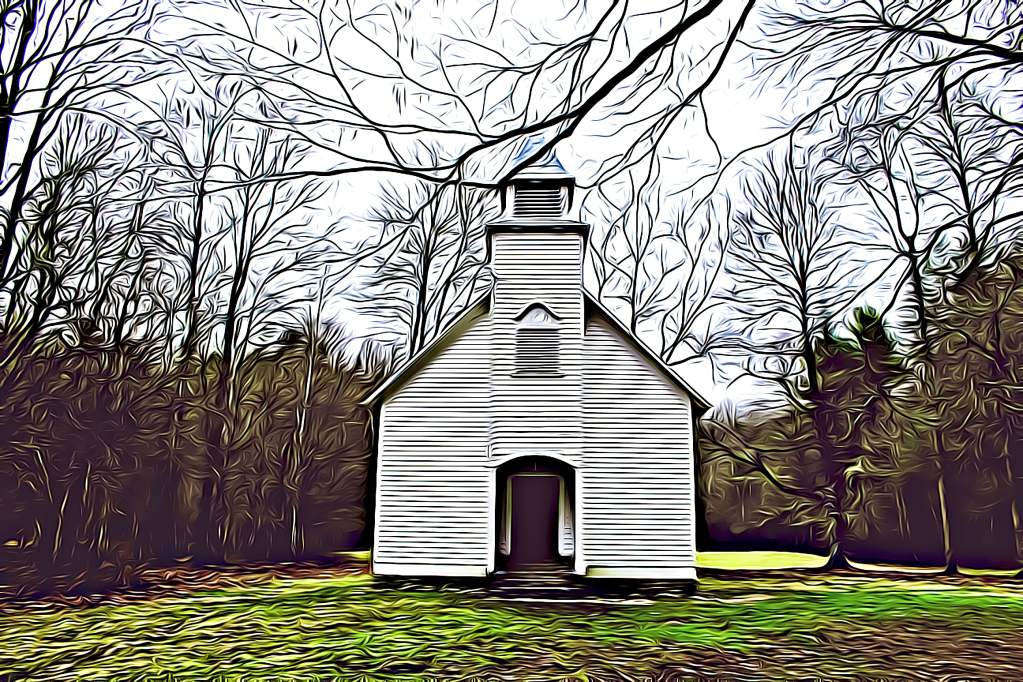 As he neared the old country church, he slowed and turned between the narrow confines of the ditch on either side. The church stood against a backdrop of old trees. The white steeple looked brilliant against the intermittent sun that peeked through the clouds.