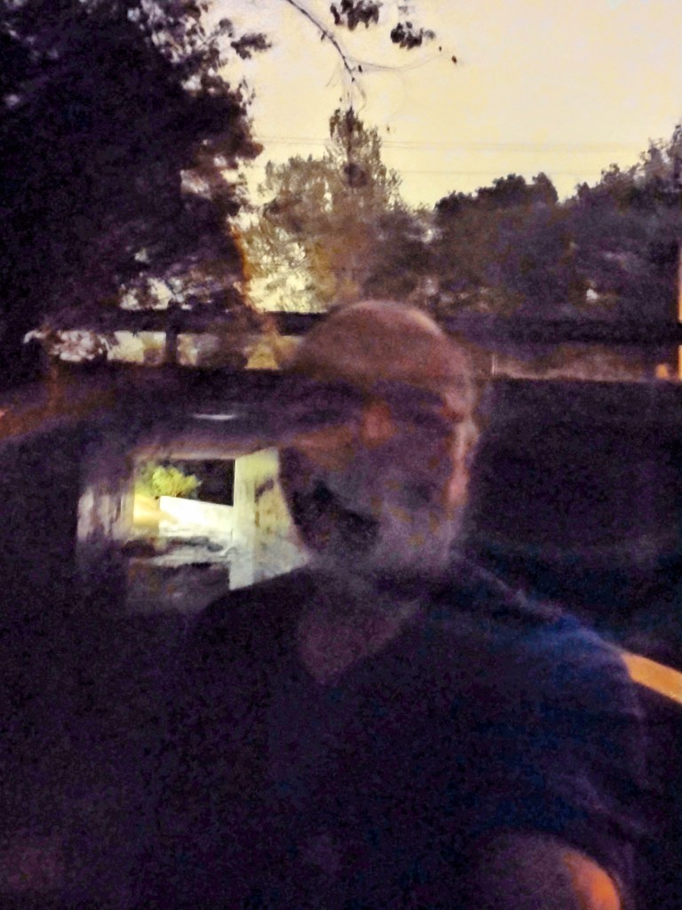 I used the wrong night time effect on this picture. It’s a terrible picture but I love it… There’s so much moisture in the air that it renders me like an apparition. It’s 4:00 a.m. and dark. But the sunrise and the illumination it brings with it will soon come.