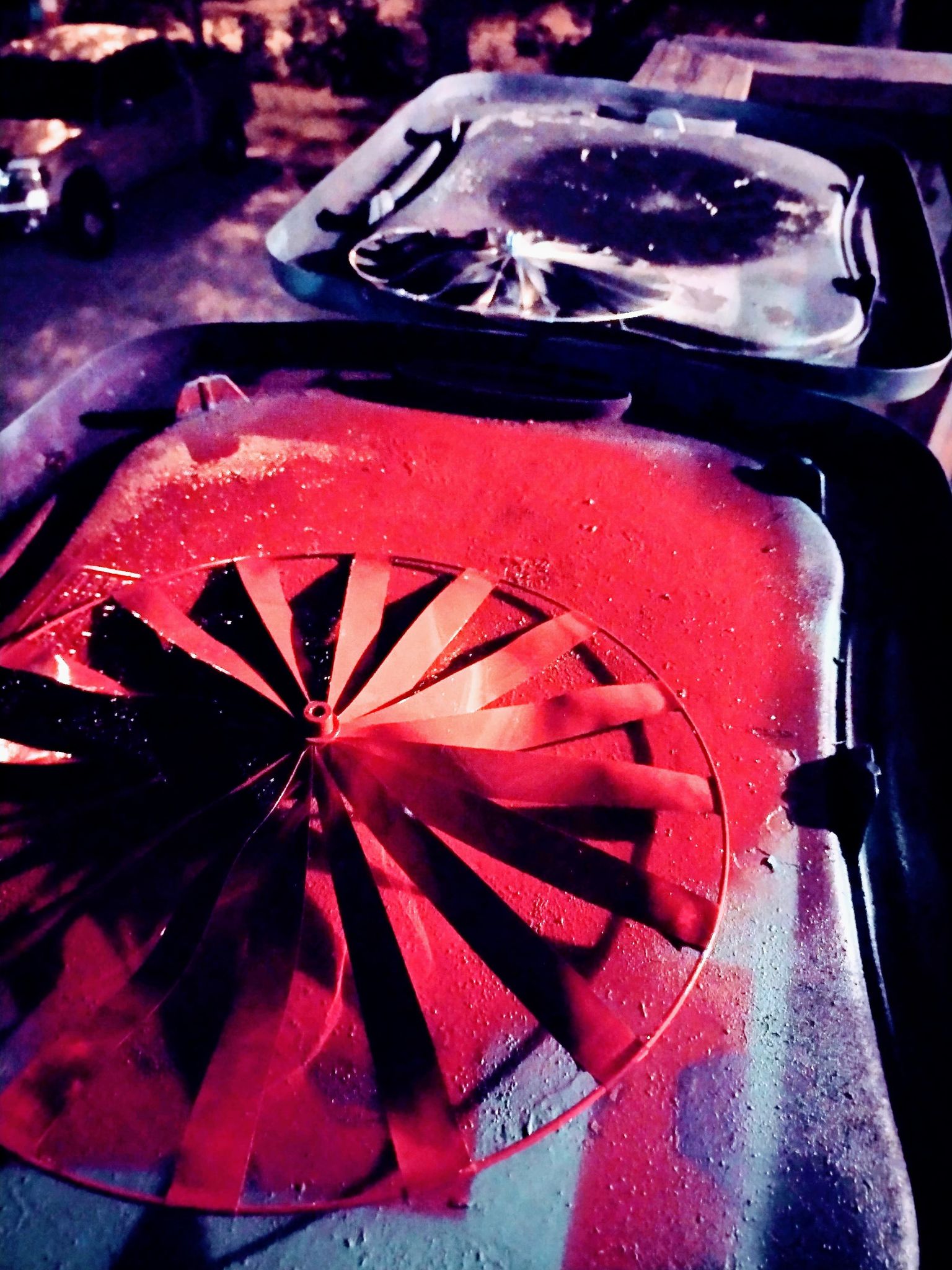 At the corner, there were a dozen memorial day-themed little spinners scattered by the sidewalk. I picked one up and brought it home. I disassembled it and painted its two circles in different vibrant colors. As I painted, I watched a neighbor load her vehicles as part of her move to a different apartment. She has her own issues, her teenage boy the cause of the move. I wanted to tell her that moving wasn’t going to fix the problem. People take their problems with them, even to shiny new places.