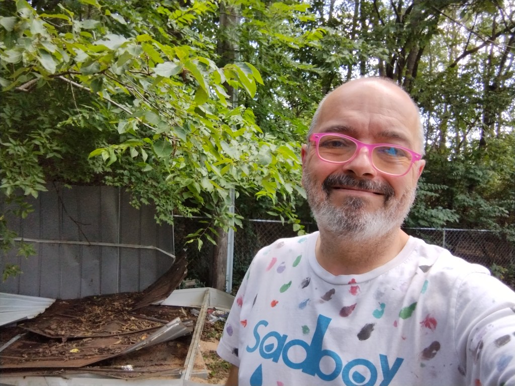 I’ve been periodically deconstructing the drug shed behind my apartment. To avoid overpiling the dumpster, I split up my 40 or 50 trips back and forth hauling the contents of said shed to the dumpster. I should have done it last year, along with the cleanup and all the tree cutting. In winter, I mean, to reduce the varmint probability.