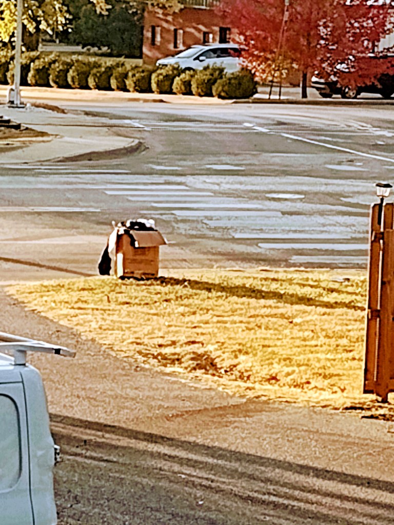 I peeked out of the apartment and saw that there was a large spilled UHaul box in the fast lane by the intersection. Someone moving dropped a 75 lb box of really nice expensive clothing without realizing it. My first concern was someone speeding at 70 mph hitting it. I went and picked up the spillage and stuffed it back into the box. Traffic mostly stopped for me as I did so. I dragged the heavy box back over to the side of the road. Unfortunately, as good as the clothing is, it all started at a 36-in waist. Yes, I’m not going to lie. I was tempted to sort it and take some. But 36″ is way too big for me. I’m sure that the people moving had no idea that it fell off or where that might have possibly happened. It won’t last long as the errant passers-by see it. At least no one is going to hit it and do a Dukes of Hazzard. Although it would be an ideal speed bump.