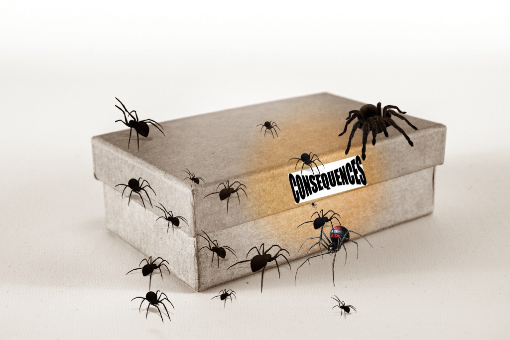Because it is still true that we judge others for their actions and ourselves for our intentions. It’s why I grappled with living with the consequences of my intentions. Though they were initially benign, it was like opening a mysterious big box of spiders out of curiosity. Before long, you find yourself covered in spiders. You react uncontrollably, in slow motion to yourself and in hyperdrive to observers, and you cannot extricate yourself.