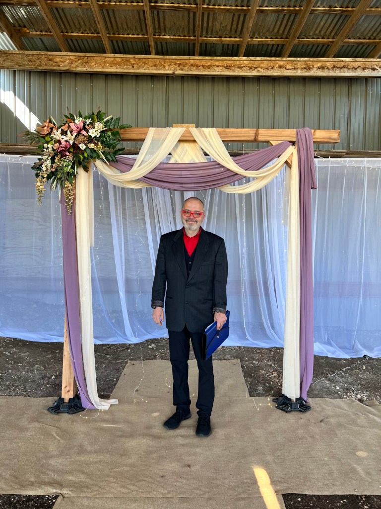 I included a picture of me that Erika took before I performed the marriage of my deceased wife’s niece. It was one of the happiest days I’ve had in my life, even though one moment filled my eyes with tears and reminded me of the people I’ve lost. I had people I loved around me on Saturday. Trusting me to fumble performing the wedding, but also sharing their special day with me.
