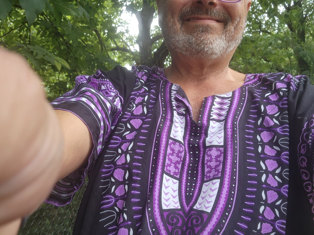 Dashiki shirts have a lot of history and symbolism. I realized that my new scrub tops were very similar to the style and cut of these shirts. So I got a colorful one. Of course. It’s extremely comfortable. I’m wondering why we don’t wear this type of garment way more often.