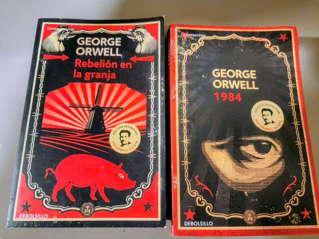 I have two of Orwell’s most famous books in Spanish. I’ve been reading “1984,” constantly finding parallels. I included “Animal Farm” in the picture because it is a companion warning to what’s going on around us.