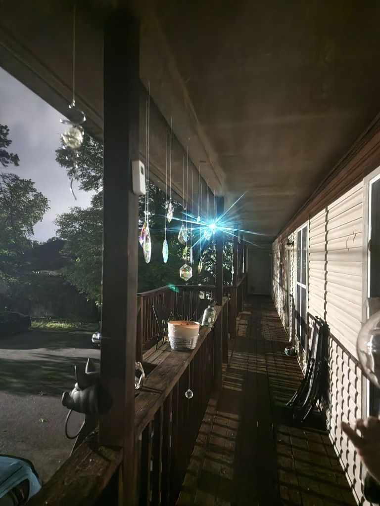 I made cheesecake out of the buttermilk of the situation. I’ve spent a couple of hours out on my landing enjoying the smell, look, and feel of a completely dark neighborhood, experimenting with my newly renewed eyesight.