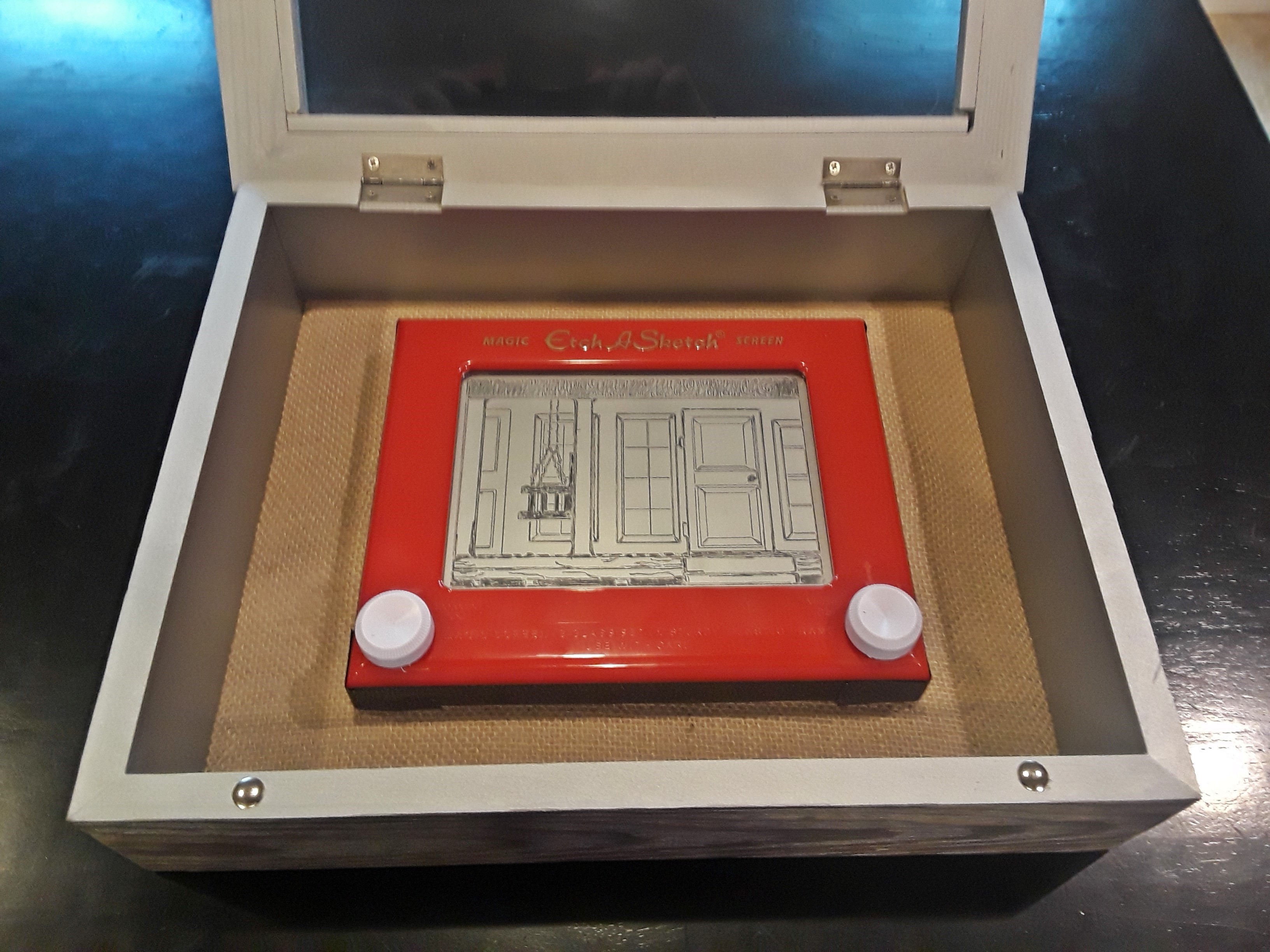 My favorite cousin and a friend conspired to make me this etch-a-sketch rendition of my grandparent’s porch. It was a beautiful and creative piece of work, one which I loved. Such personalized gifts are rare indeed in this life.