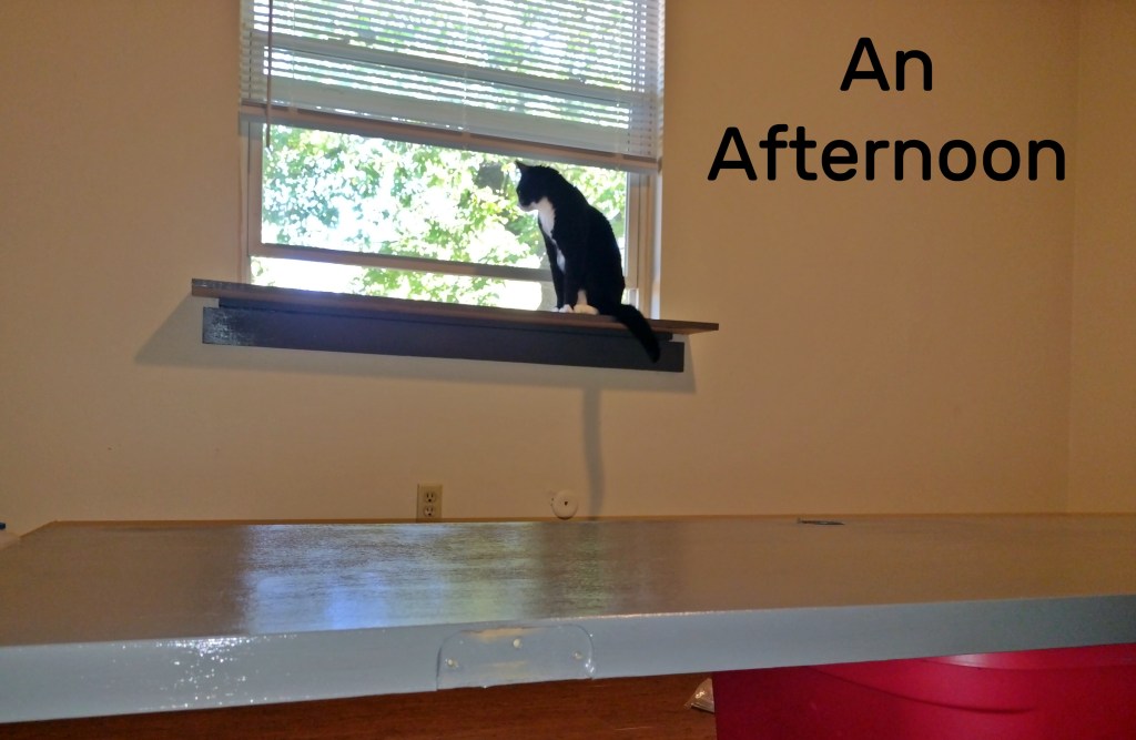 I had taken a break from painting two more inside doors of my apartment. To my dissatisfaction, the pragmatic part of me had surrendered to painting the doors classic grey – instead of a wild blue or deep red. In a flash of inspiration, I decided to find (or make) a metal silhouette of a crow and put it on at least one of the doors. My bathroom door has been off since two days ago. The cat learned again that it is idiotic to jump onto the top of a recently-painted door. If he does it again, I’m leaving the paw prints as part of the intended look.