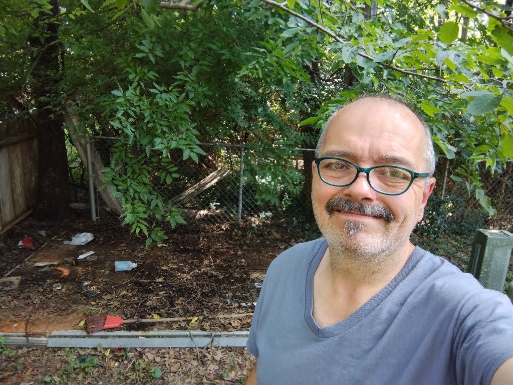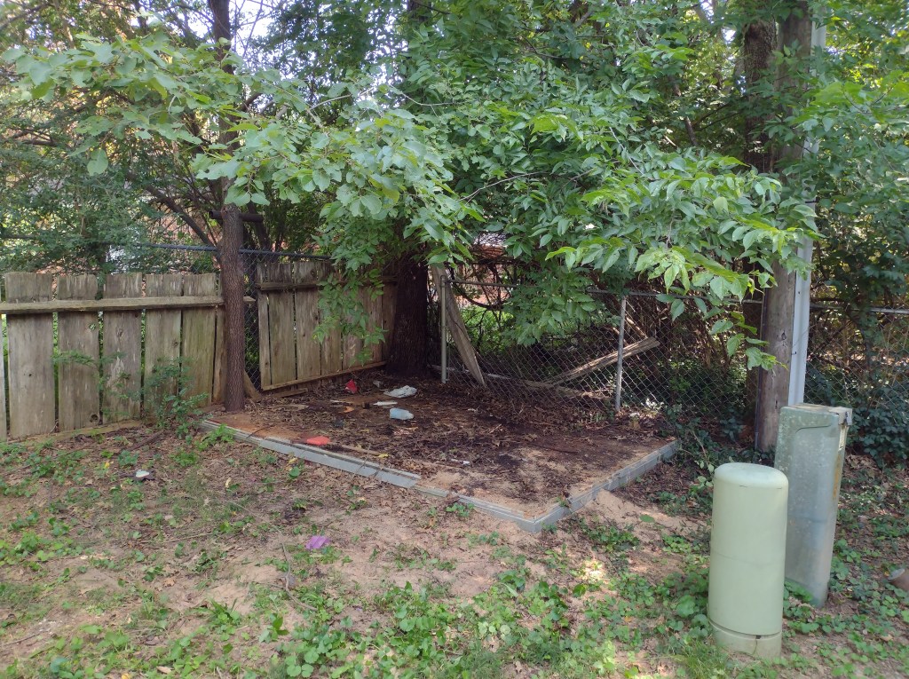 The stout metal frame covered in rotted wood remains. It taunts me. Given that I made it this far, I’m going to remove every vestige of that horrible shed. Even if it kills me.