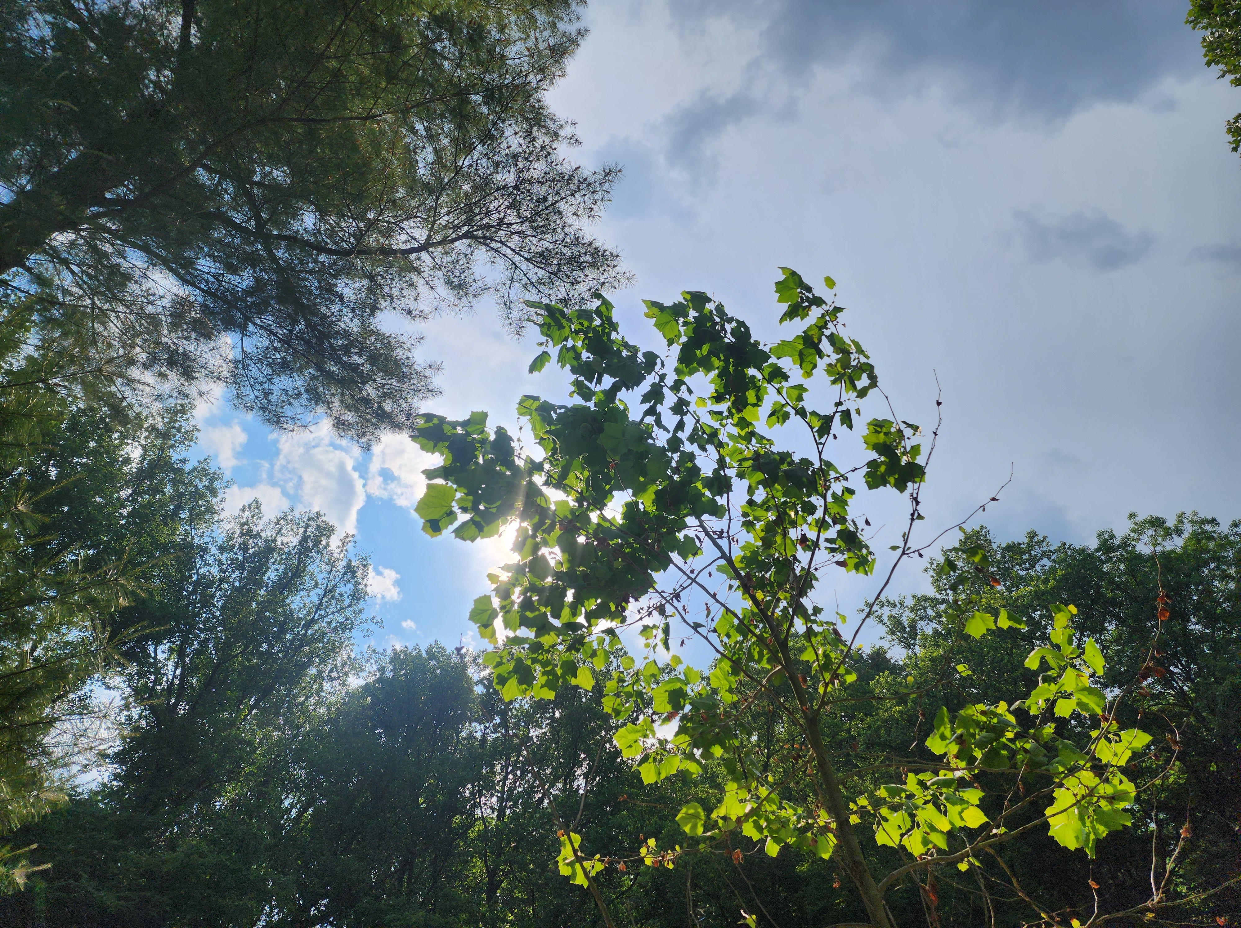 I have a couple of pictures of us at the beautiful spot in the valley, canopied by immense trees. The sunlight quickly yielded to darkness and impending rain. We walked along the creek, bemused by the ducks and careful of the cyclists enjoying the incredible nature-wrapped trails cutting through the park. I could spend days there, lost in the old trees and history. Within fifteen minutes of taking the picture of the sky, the storm had rolled in, darkening the valley and rendering the canopy of trees as a noir version of a different place. As we drove away, the storm swayed the trees and dropped little limbs onto us.