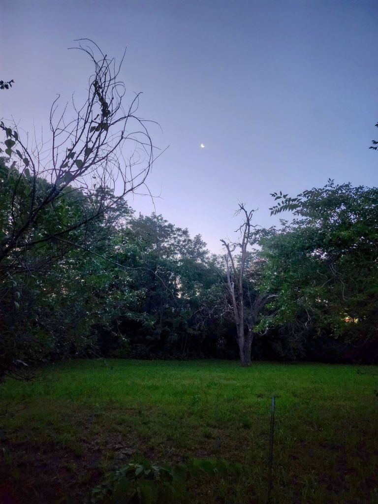 If you know where to look, there’s a hidden field along Green Acres Road. And if you’re out early enough walking in the magical hour before dawn, you can stop and watch the bats frolic. If you stand next to the beautiful decaying tree and look up, the bats will perform for you. Although the approaching morning sun diminishes their visibility, you can look up and see the moon and Venus twinkling. I don’t go watch the bats often enough.