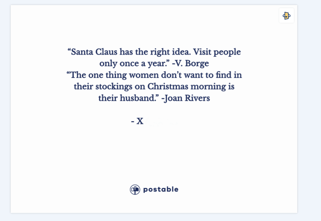 P.S. If you are not familiar with Postable, it’s a great way to have some of the fun without needing to do the actual creation by hand. Postable – Create and Send Custom Cards You can upload pictures and design custom cards. They’ll also put it in an envelope and mail it for you – using any return address you might dream up. If you want to do Christmas or holiday cards, I highly recommend that you give Postable a try.