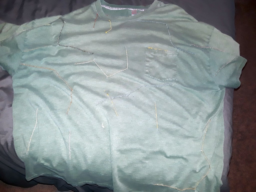 In my early 20s, I started doing what I call rip-shirts. Some of them took me 100 hours to make. Simply put, I choose a shirt, usually of a distinctive color, then spend hours sewing stitch patterns all over it. Part of the fun is using a wide variety of threads, especially of different colors. It’s supposed to be garish. It’s possible to do intricate monograms this way, too, which I’ve done. I gave away many of these for years. One of the key advantages of such a shirt is that it becomes almost impossible to distinguish if it should be discarded, as all subsequent rips, tears, and issues can be restitched and become part of the resulting pattern. One of my shirts had over 500 hand-stitched lines on it. For another, I sewed a difficult-to-see curse word cleverly hidden in the stitch lines. That one amused me greatly.
