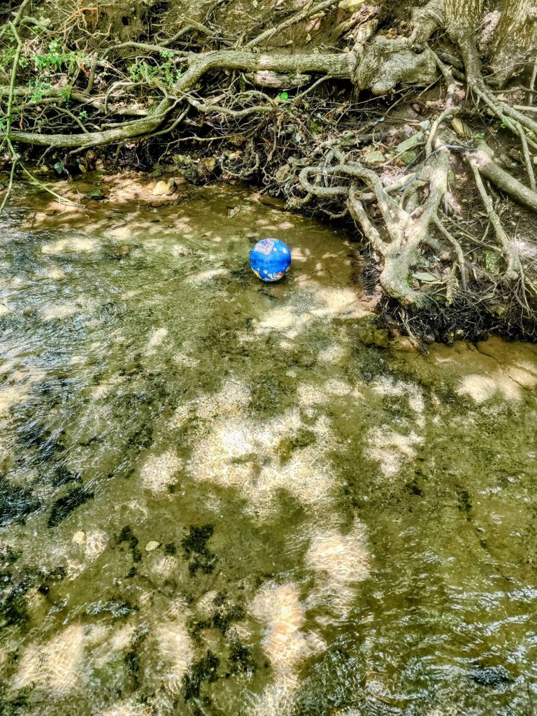 PS The ball in the water is one that I retrieved by climbing through brush I should not have a few days ago. I was by the creek and saw it. There was a family frolicking on the water dam so I thought it would be fun to get the ball and throw it across to them without them knowing where it came from. By the time I emerged mostly unscathed to throw it, the family had moved on.
