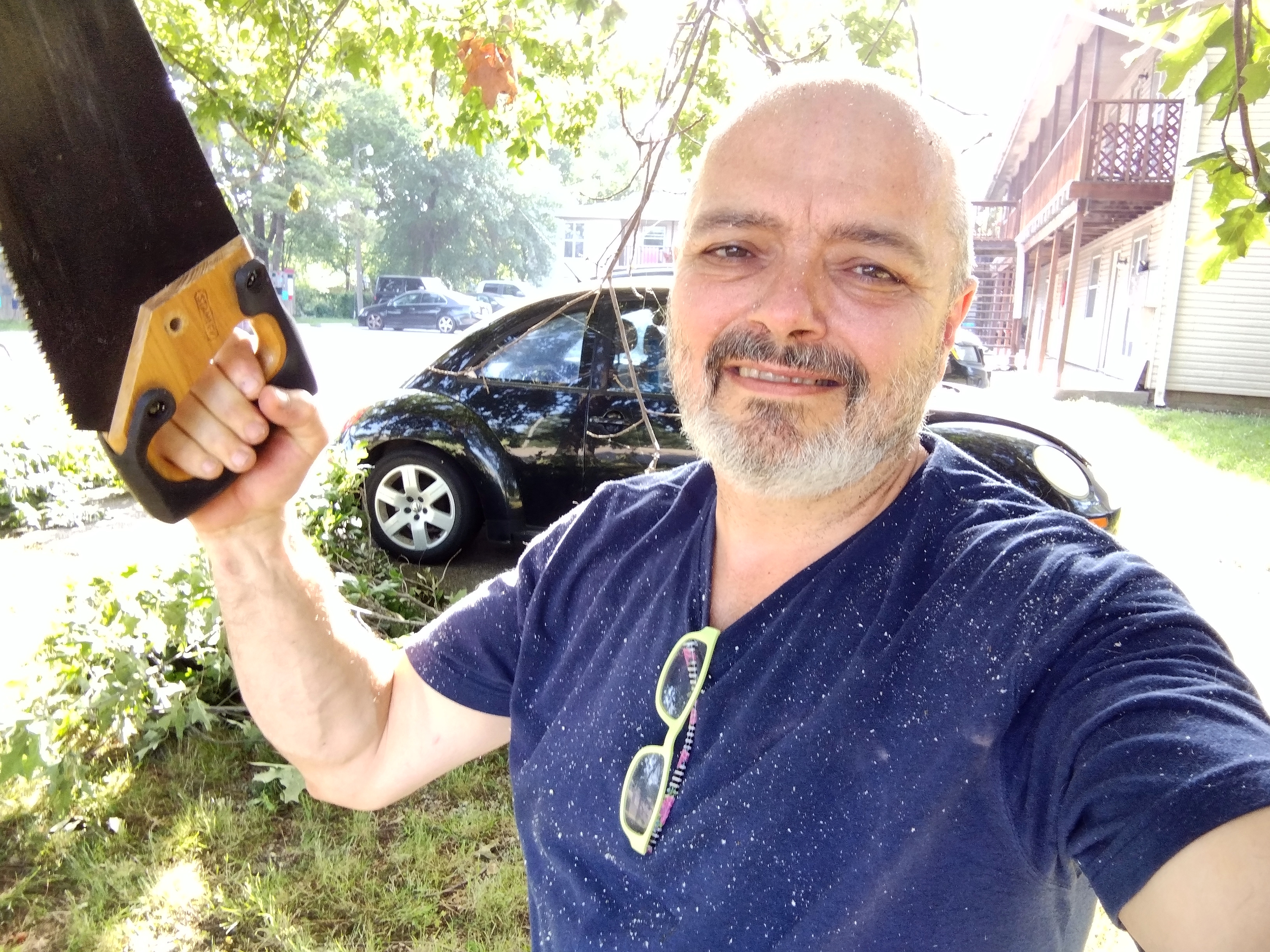 “Vengeance is mine,” sayeth the dude wielding the saw! My arm is still sore from yesterday’s antics – so I channeled that into a declaration of sawing this morning.