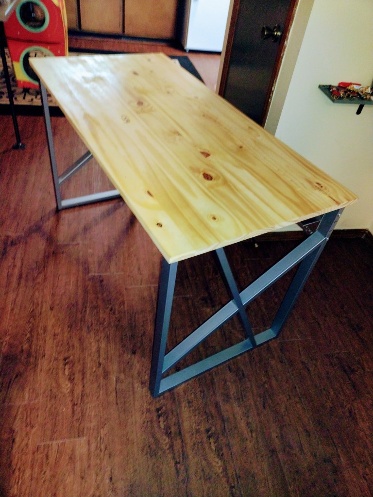I got a great quality top and lightly sanded it, then put a clear coat on it… instead of an outlandish color. The stripped down version is amazingly minimalist. The large x on both ends is all the flair it needs. I somehow resisted painting the side supports too. As a non-recovered paint addict, this was very tough for me. .