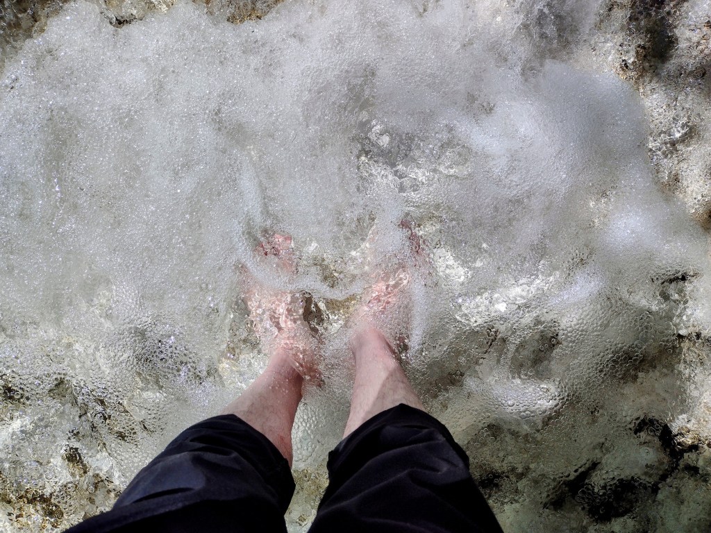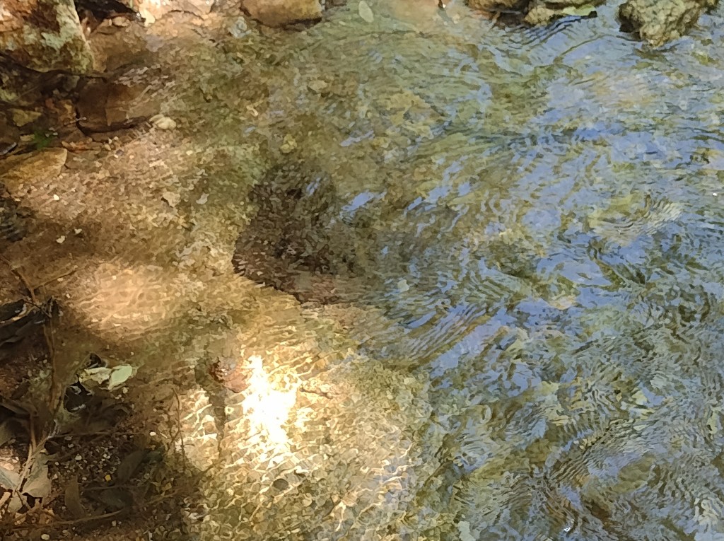 I’m glad I stuck around. The fox came out of the creek and stood by the bridge, watching me. I took a really great picture of the ground because I still had the phone camera on long exposure. The fox yelped at me and I yelped back. I would have gotten a better picture when the fox stopped in front of me and watched me. But a car came over the hill at 70 mph. Its lights washed out my camera lens as I snapped a picture.