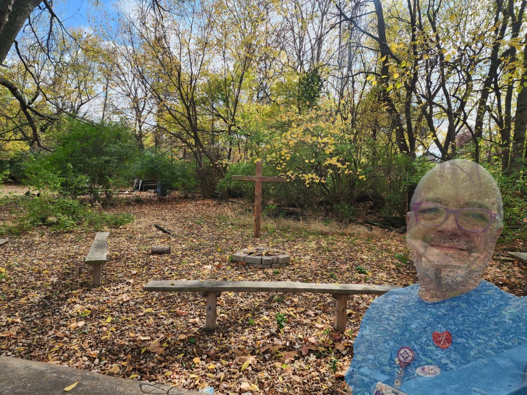 After voting, I wandered the back half of the property. It was not well-maintained, but I had some moments of beauty walking back there. The weather was uncharacteristically warm and calm for November. It was odd to sit on the benches in front of the rudimentary cross, feeling the sun filter through the trees and listening to the birds sing. Not too far away, the hectic comings and goings of voters might as well have been a mile away. It was a contemplative place, one that I alone owned for several minutes. I admit that it was a bit strange thinking that the ballot contained an initiative for religious freedom; it’s obvious that the intent is anything but motivated by freedom. Had I been in that mindset, I’m sure I could have felt the presence of a creator in those trees and on those benches. Please don’t fault me for not feeling such a presence. It was sufficient to be there, seeing the beautiful world around me.