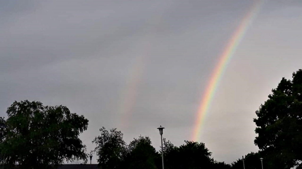 PS The double rainbow is from a recent Sunday morning. I stole a walk among the rainy outbursts that chased me across Fayetteville. What a beautiful morning that was.