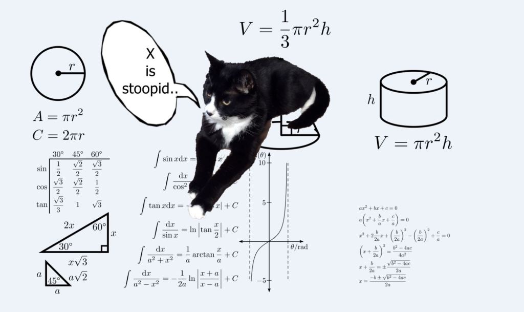 The math picture I made is of Güino; it accurately reflects the mental machinations he’s undoubtedly doing when he sees or hears the door open. Cat 15, Human 0.