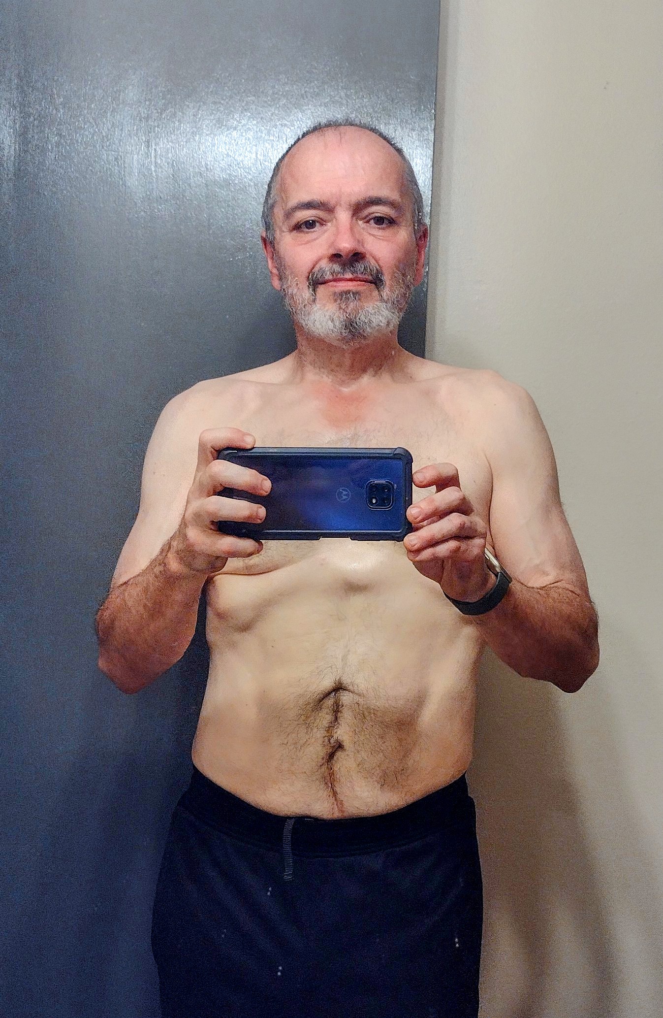 An actual test of whether someone cares what they look like is if they can run without a shirt on. Forget swimming without one; the litmus test is running, where there’s no water to hide your body. For 54, I look normal. My scar left what looks like a second belly-button indentation a few inches above my real one. The surgery left a “pooch” between the two indentations. When I think back to how I looked and felt before, it is still hard to believe I fooled myself for so long. I’m not a fan of people being ashamed of their bodies, no matter what shape they are in. I understand it, but when you compare the vast variety of body types and shapes, everyone has something they hate about themselves. Except for me. I accept it all because it’s me. I did the work needed to remove the excuses I kept whispering in my head. Looking normal is something I hadn’t anticipated.